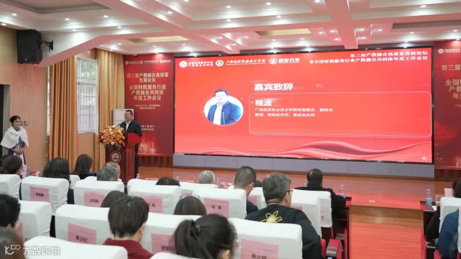 会议在广西经贸职业技术学院青山校区6101多功能报告厅正式拉开帷幕,由广西经贸职业技术学院财会金融学院院长吴兴兴教授主持,广西经贸职业技术学院党委委员、副校长程波教授致欢迎辞,对参会嘉宾表示热烈欢迎,并强调了产教融合在推动财税服务行业高质量发展中的关键作用。