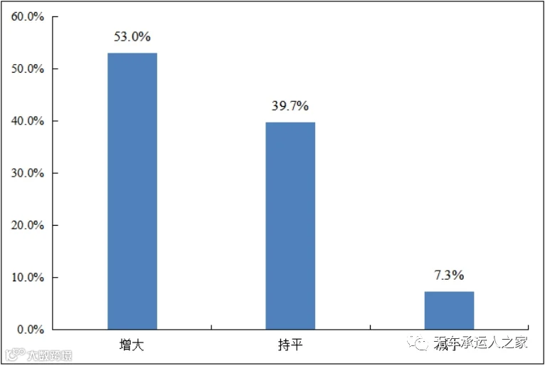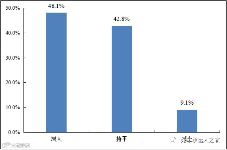 被调查企业反映上游拖欠运费(费用)压力增大。调查数据显示,近一半的被调查企业反映与上年相比上游拖欠运费(费用)压力增大,还有超过四成的企业反映持平。物流企业由于账期要求已经面临较大资金压力,如果上游企业再拖欠运费,企业一旦流动资金链条断裂,将不得不退出市场,增加了市场不稳定。由于物流业务层层分包的特点,《条例》对于拖欠账款的条款也很难落实。