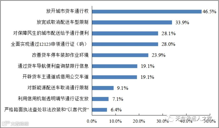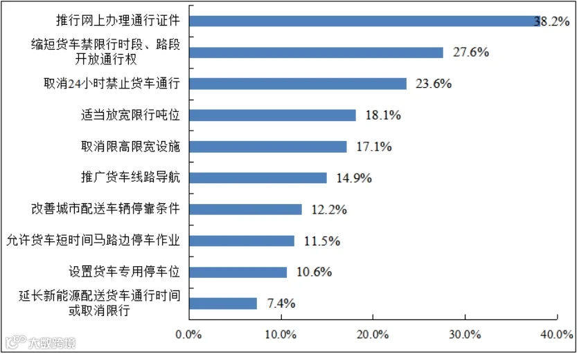 推行网上办理通行证件渐成趋势。调查数据显示,38.2%的企业已经享受网上办理通行证。据公安部公开信息显示,全国第一批70个城市自2021年9月1日起、第二批175个城市自10月20日起,可以通过“交管12123”APP直申领发放货车电子码通行证,统一申领入口,简化申请手续,便利司机使用。
