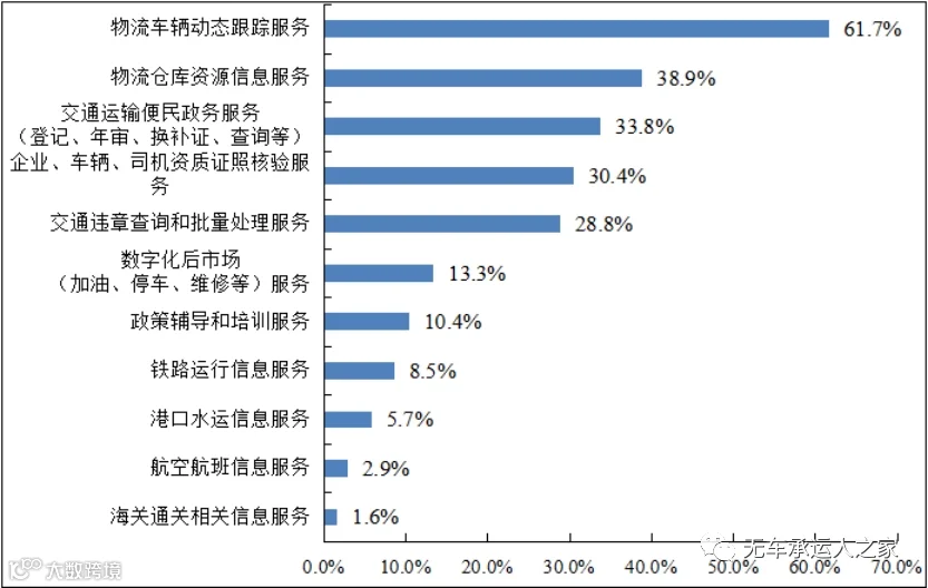 共享经济深刻影响行业,目前全国700万辆12吨及以上重型货车安装了卫星定位系统,全面接入互联网。以个体经营为主、供需较为分散、需求规模庞大的特性适合探索“所有权与使用权分离”的资源共享新模式。但是企业反映缺乏公共型数字化转型服务支撑。61.7%的企业反映最需要提供物流车辆动态跟踪,38.9%的企业反映最需要物流仓库资源信息服务。车辆、仓库资源都是物流领域重要的生产资料,网络货运平台等物流互联网平台在推进“所有权和使用权分离”方面做了一定探索,但是仍存在信息共享不充分、两权分离不彻底、平台和企业利益分配不合理、政务公共数据不开放等问题。