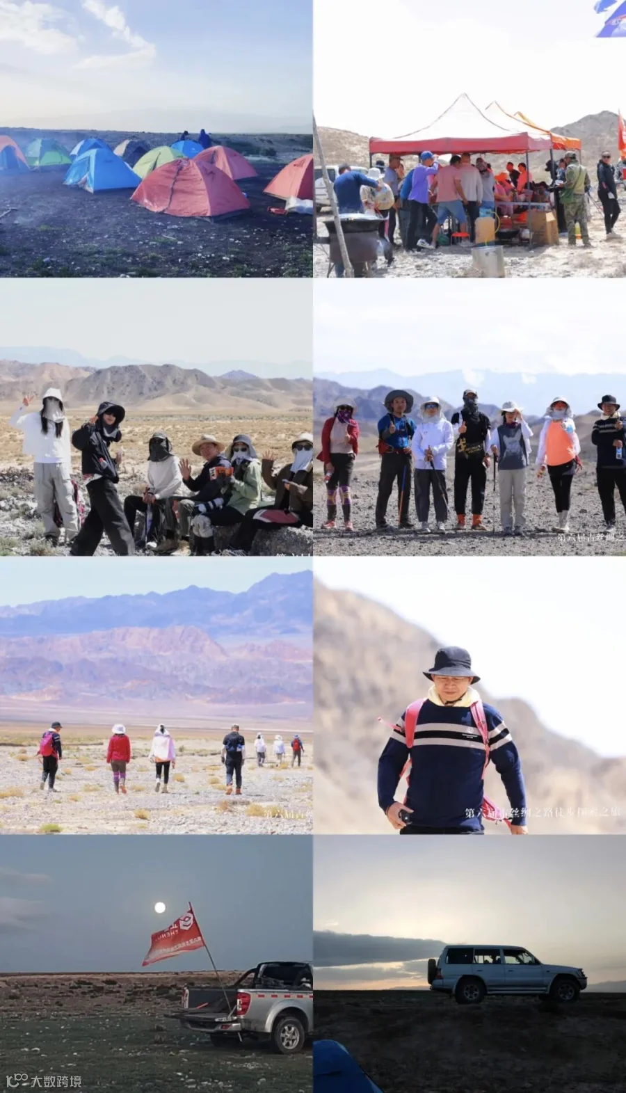 千山鸟飞绝,万径人踪灭,正午的骄阳炽烈如火,劲吹的风沙铺天盖地。20日,徒步队员们携手并肩穿过杳无人烟的戈壁滩,峰回路转,终于抵达祁连山脚。黑河发达的水系刻画了一片沟壑纵横、清泉淙淙的天然草场,队伍就在这里扎营过夜。看过了青空万里银河闪耀,看过了荒草挂露灿烂晨曦,第二天,他们再次整装出发,翻过山谷垭口,直到重重雪山近在咫尺,挑战者们的喜悦在这一刻达到顶峰。