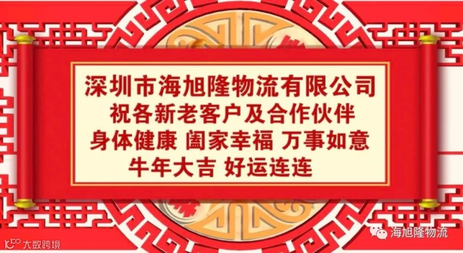 海旭隆物流在此祝新老客户及合作伙伴 新年快乐 阖家幸福 身体健康 万事如意 牛年大吉!