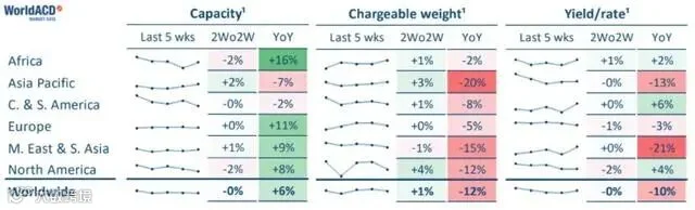 与此同时,航空货运数据提供商WorldACD报告航空货运量下降,第38周和第39周的货运量同比下降12%。亚太地区空运出口货量比去年高点下降了20%,北美地区空运出口货量同比下降12%。该公司表示:“货运量显示出持续疲软的趋势,尚未有明确迹象表明第四季度会出现旺季。”