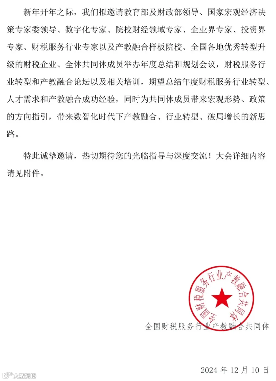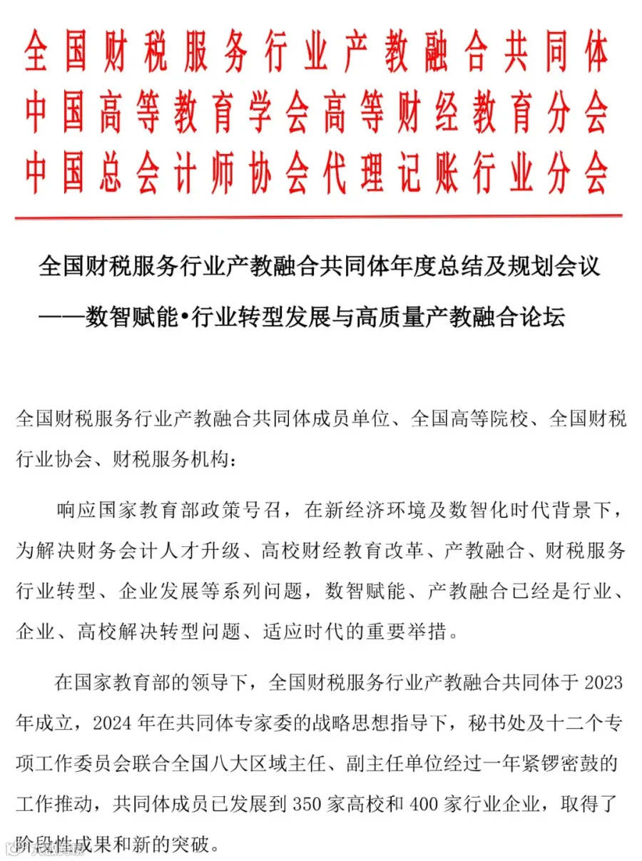 邀请函 | 全国财税服务行业产教融合共同体年度总结及规划会议
