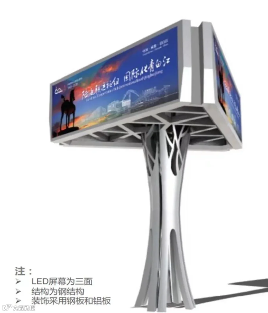 为两套900平方户外三面高炮LED显示屏
