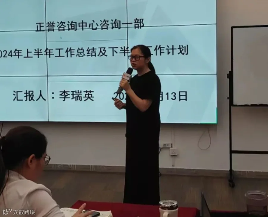 正誉集团旗下事业部及各职能部门管理人员轮流上台进行了关于2024年上半年工作的深度总结汇报。分析了上半年工作的成果和存在的问题,并提出改进的措施,根据公司战略制定下半年团队的目标和发展计划。