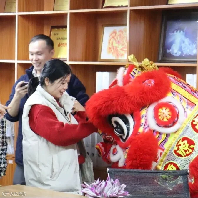 随着热烈的欢呼与掌声,舞狮仪式拉开序幕,掌声雷动,喜庆欢快的气氛震撼人心,同时也点燃了全体员工对新的一年的美好憧憬。