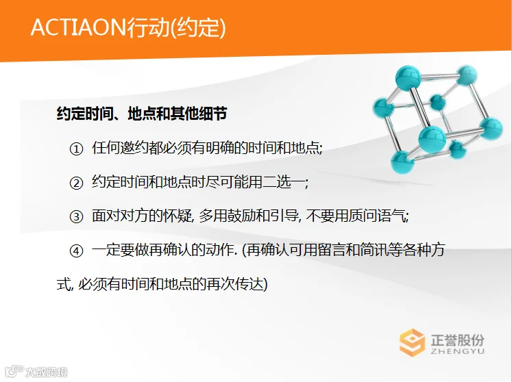 在沟通中,对话话术很重要,但如何正确传达自身的需求以及定制分析客户需求,是为绝大多数人所缺乏的技巧。在课堂中,陈老师从“口碑转交”“增强情景指向性”“排除顾虑”等方面,分析了原因和大量案例,使学员能切身体会到话术的奥妙,还通过“布置电话邀约作业”,让学员都可以通过语言再现情景画面,从中发现、学习、提高、成长。