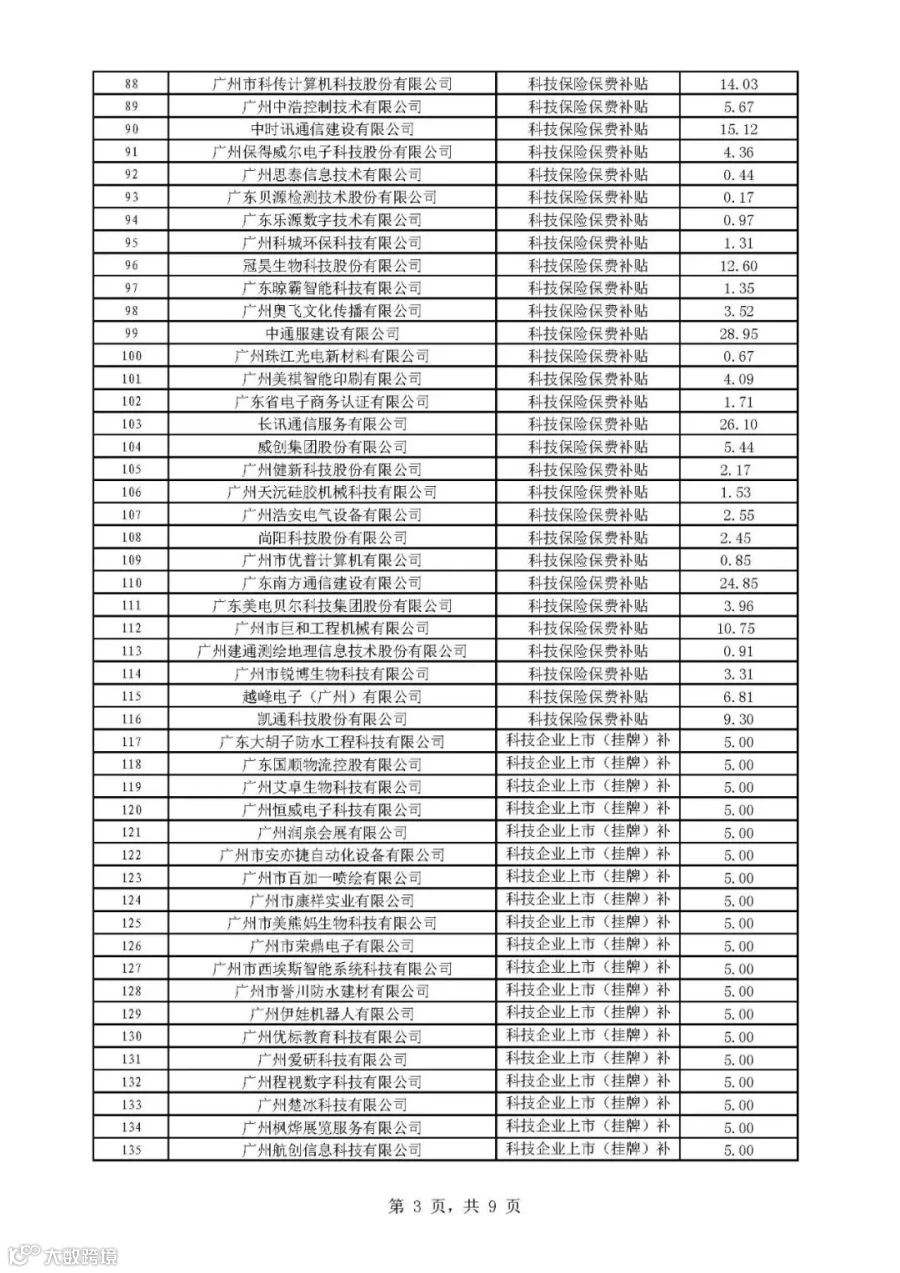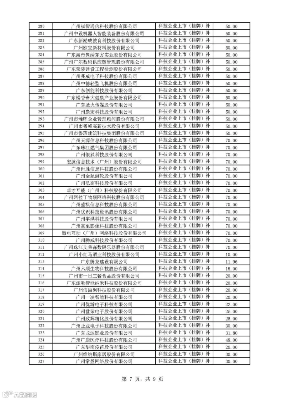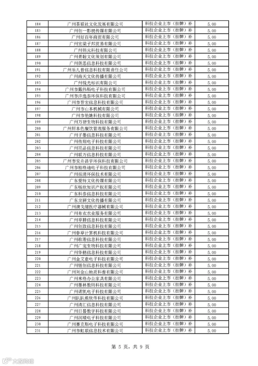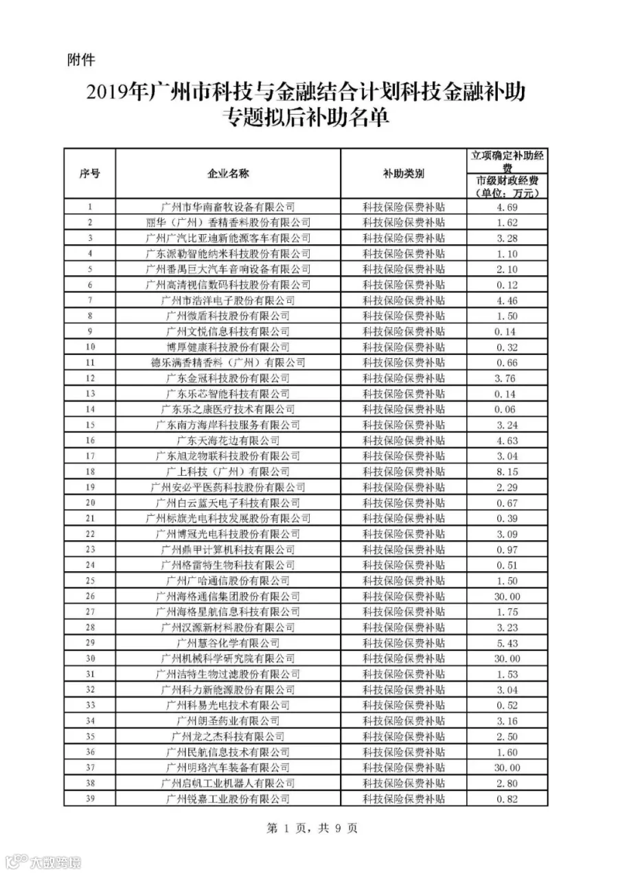 2019年广州市科技与金融结合计划科技金融补助专题拟后补助名单
