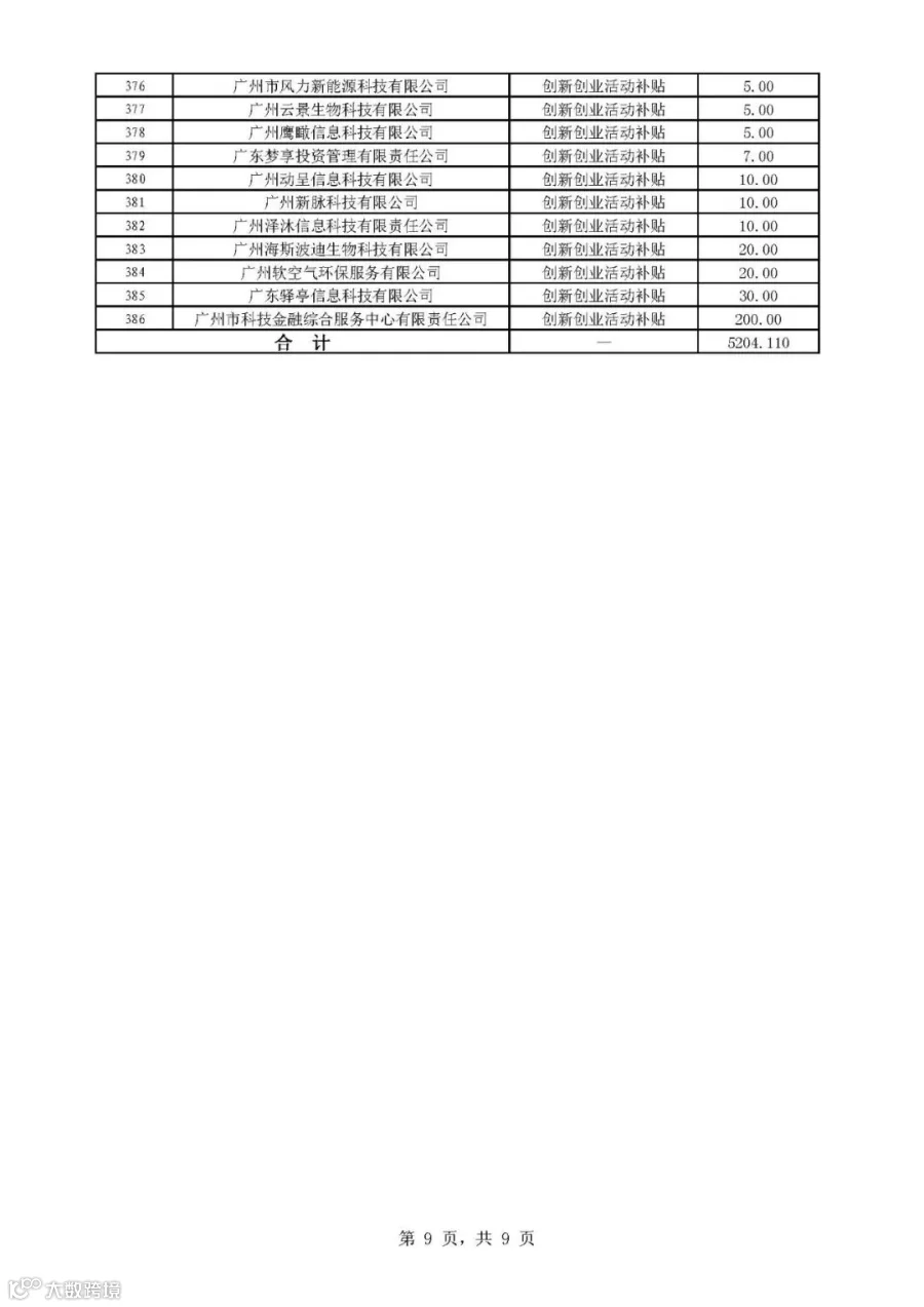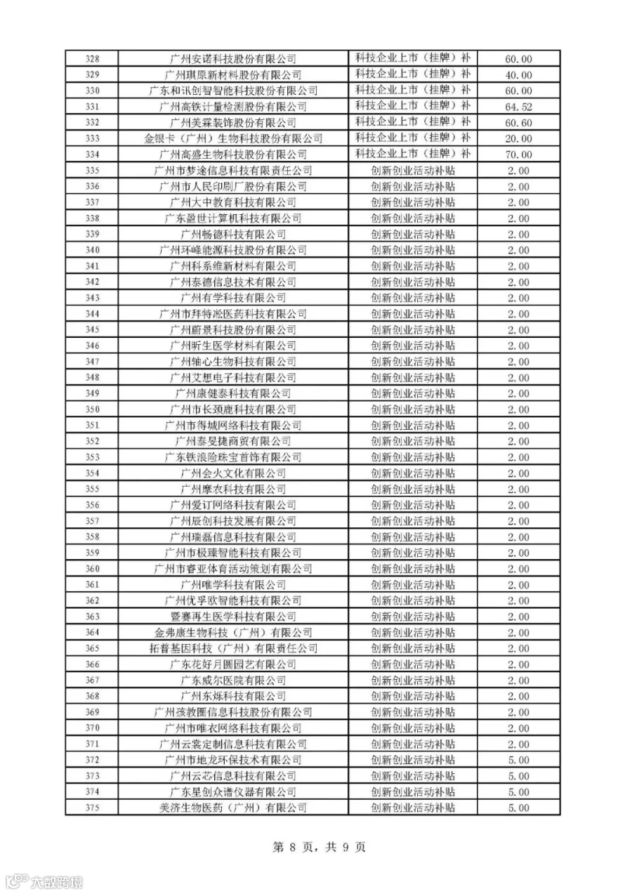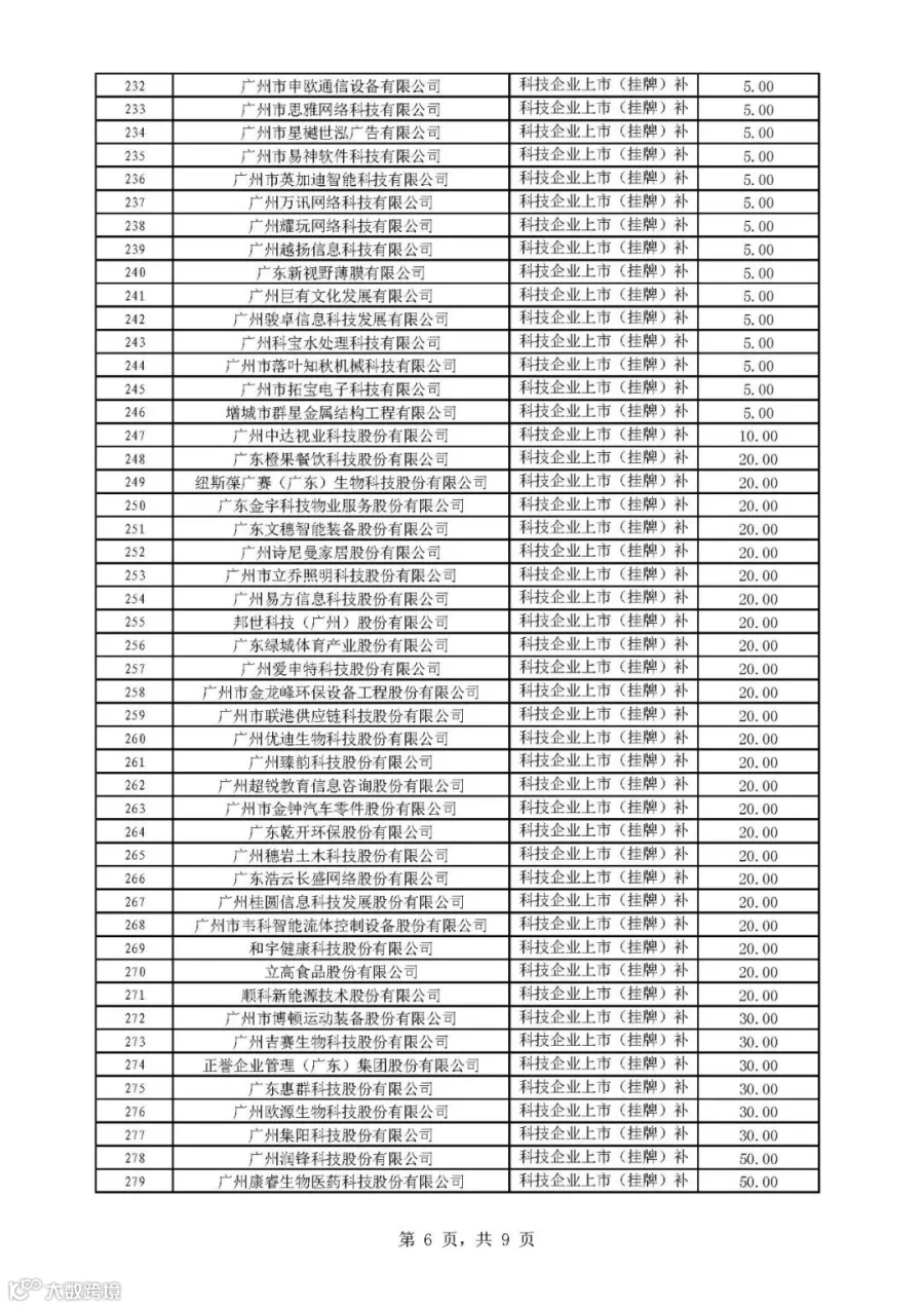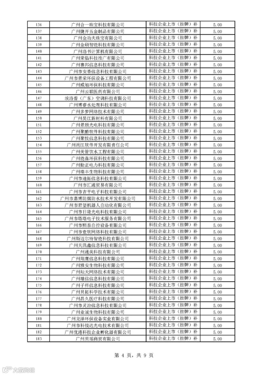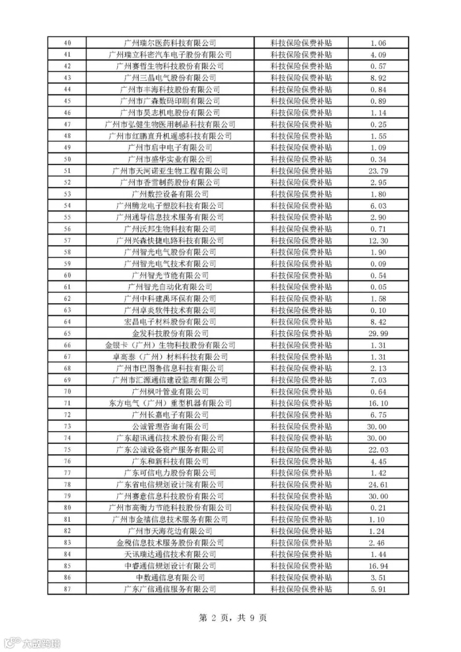 2019年广州市科技与金融结合计划科技金融补助专题拟后补助名单