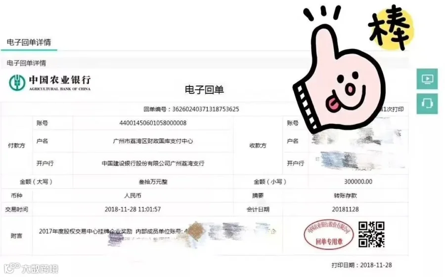 所以也是看准这个时机,我司旗下的钱多多投资有限公司积极帮助客户股改挂牌。就在这喜庆的今天,正誉集团以及我们的客户,都收到荔湾区企业挂牌的补贴!
