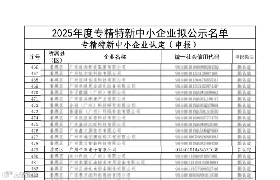 广州帝声电子有限公司迎来重磅喜讯——经过严格的审核与评定,我们成功斩获“专精特新中小企业”殊荣!这份由政府部门权威认证的资质,不仅是对帝声电子在电子领域专业化、精细化、特色化、新颖化发展成果的高度肯定,更离不开每一位客户长期以来的信任与鼎力支持。在此,我们向所有合作伙伴致以最诚挚的感谢与敬意!
