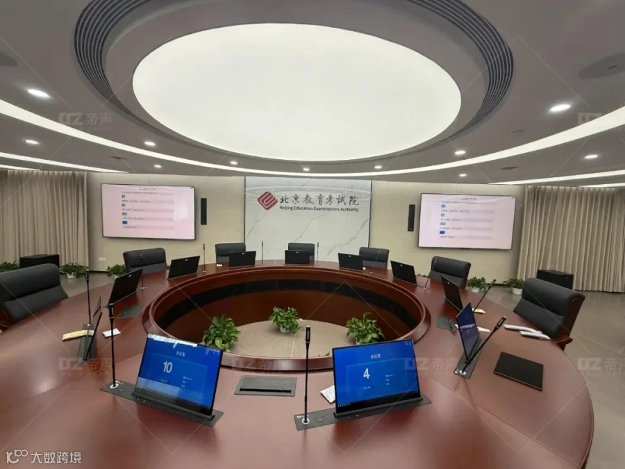 针对北京教育考试院会议场景多元、数据安全要求高、跨部门协同频繁的核心需求,帝声电子团队深入现场调研,摒弃标准化产品堆砌,构建了全链路智能会议解决方案。