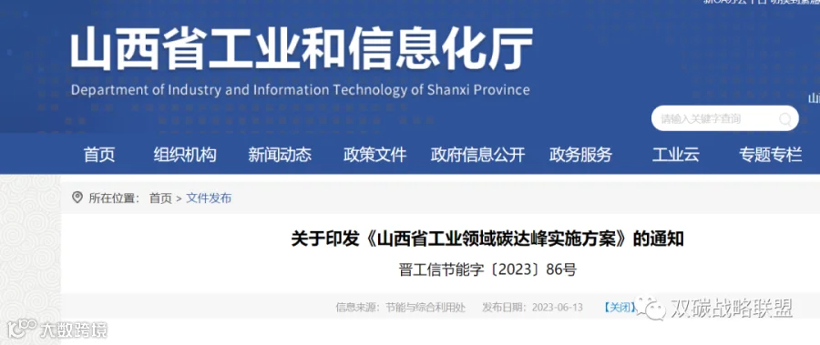 山西省工业领域碳达峰实施方案