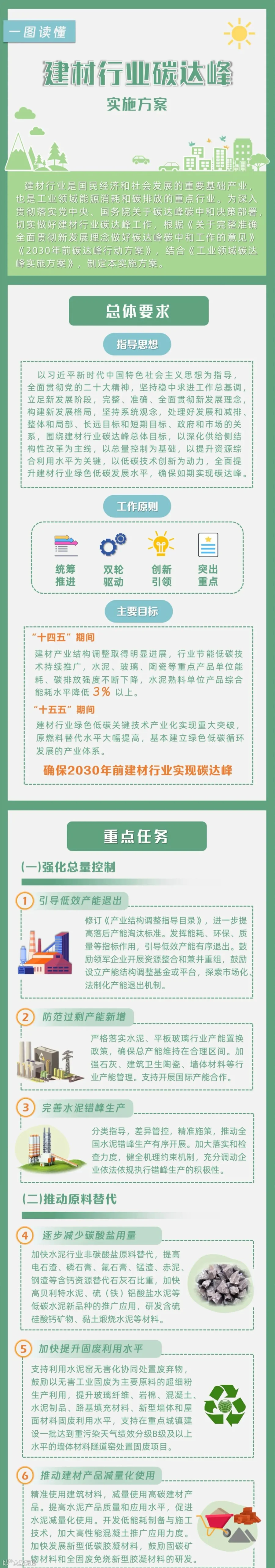 近日,工业和信息化部、国家发展和改革委员会、生态环境部、住房和城乡建设部等四部门联合发布《建材行业碳达峰实施方案》(以下简称《实施方案》),为了更好地理解和落实《实施方案》,现就《实施方案》内容解读如下。