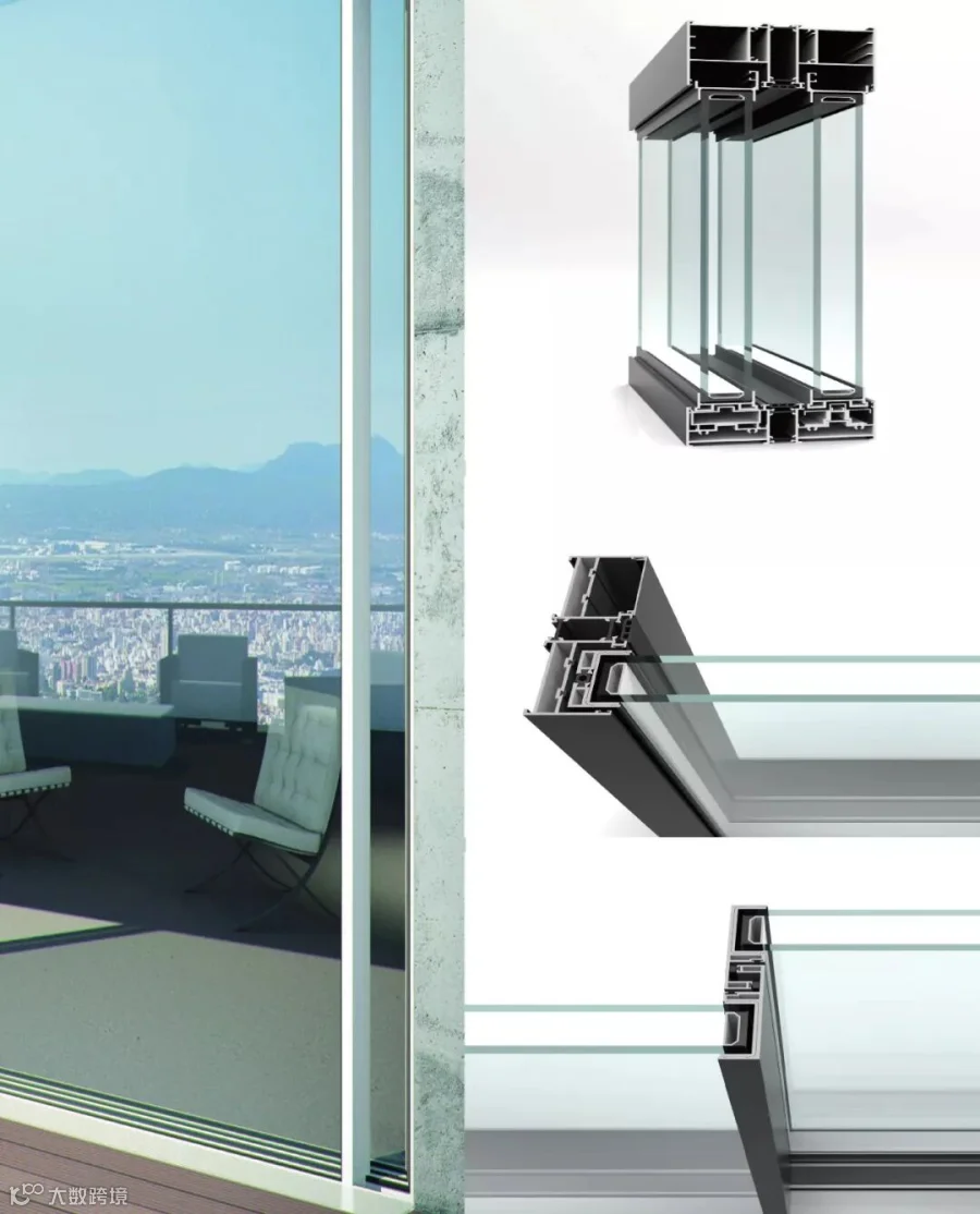 金旭丰—全景门,21mm-31mm 勾边可视面,化繁为简拥有超大视野,摒弃传统移门的粗重框架,极简推拉与自然环境更亲近。