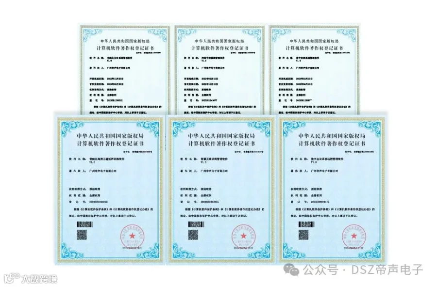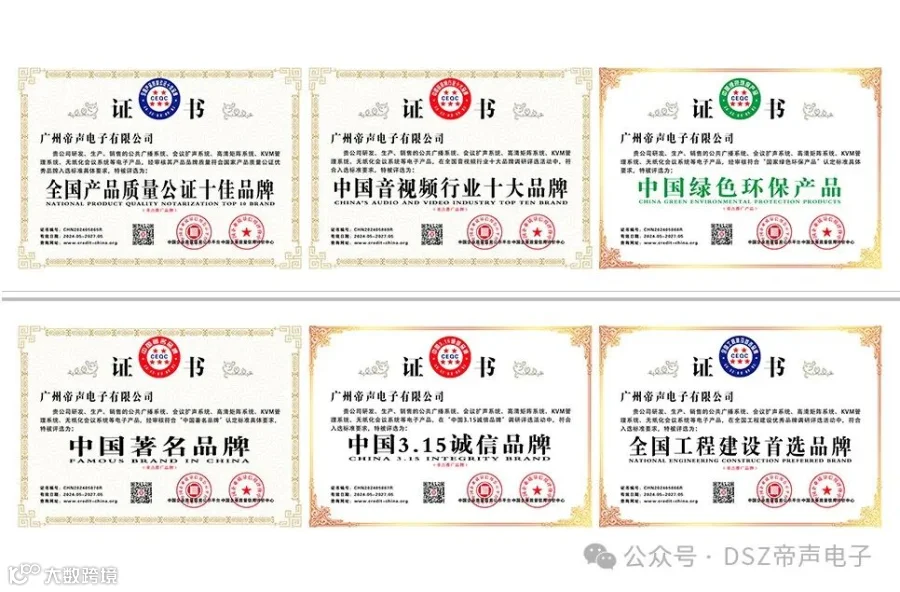 DSZ帝声电子是一家国家级高新技术企业,拥有AAA级等级证书,政府采购平台等资质。DSZ产品通过了3C认证、ROHS认证、CE认证、UL认证、EN认证,可以说,我们的产品是质量的保证,是安全的保证