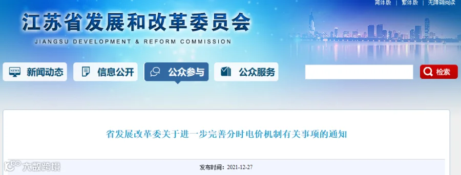 江苏省发改委发布《发展改革委关于进一步做好深化燃煤发电上网电价市场化改革工作的通知》,文中明确将对工业用电峰谷时段进行了调整,并启动夏、冬两季尖峰电价。
