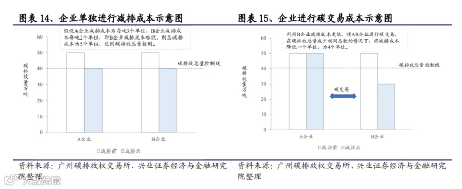 最终的效果是,A和B的二氧化碳排放总量锁定在200吨,没有超过起初200吨的配额限制,完成了碳减排目标。
