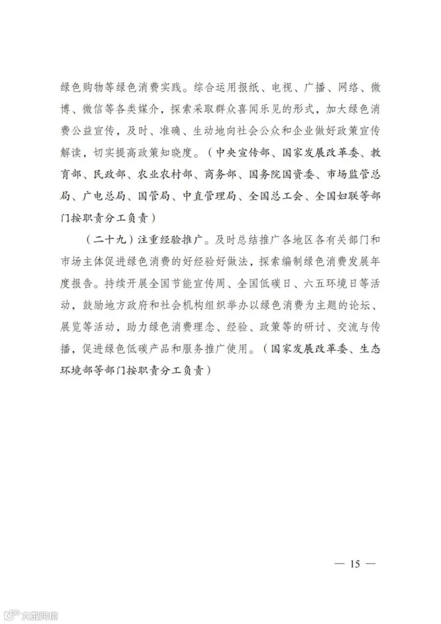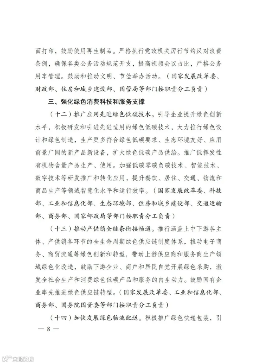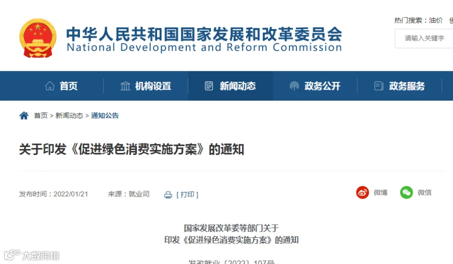 2022年1月18日,国家发展改革委、工业和信息化部、住房和城乡建设部、商务部、市场监管总局、国管局、中直管理局会同有关部门研究制定了《促进绿色消费实施方案》。