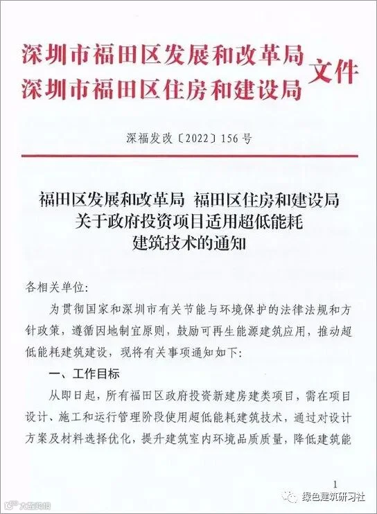 市福田区发展和改革局、福田区住房和建设局联合印发《关于政府投资项目适用超低能耗建筑技术的通知》。
