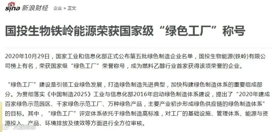生物燃料乙醇企业是绿色制造企业,国投生物