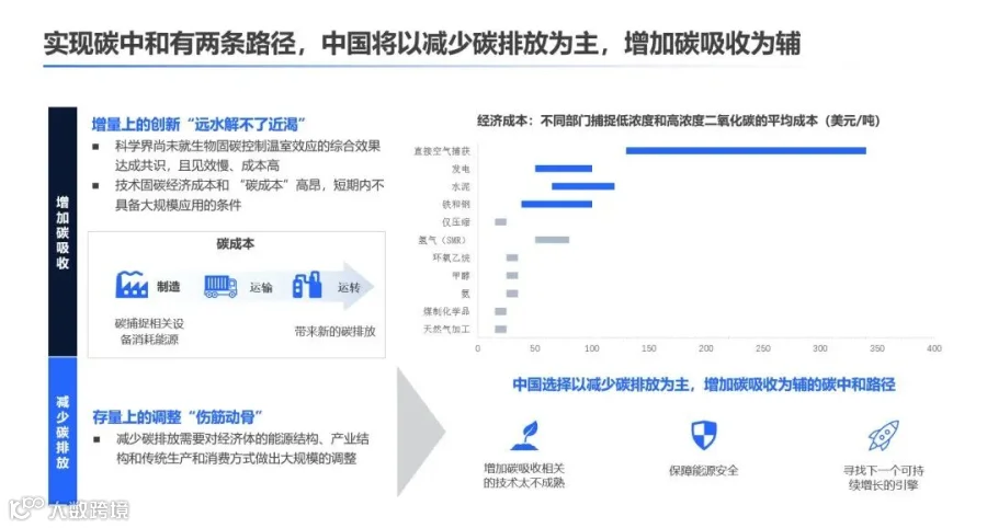 五、选择:中国将以“减排为主、吸收为辅”的思路实现碳中和