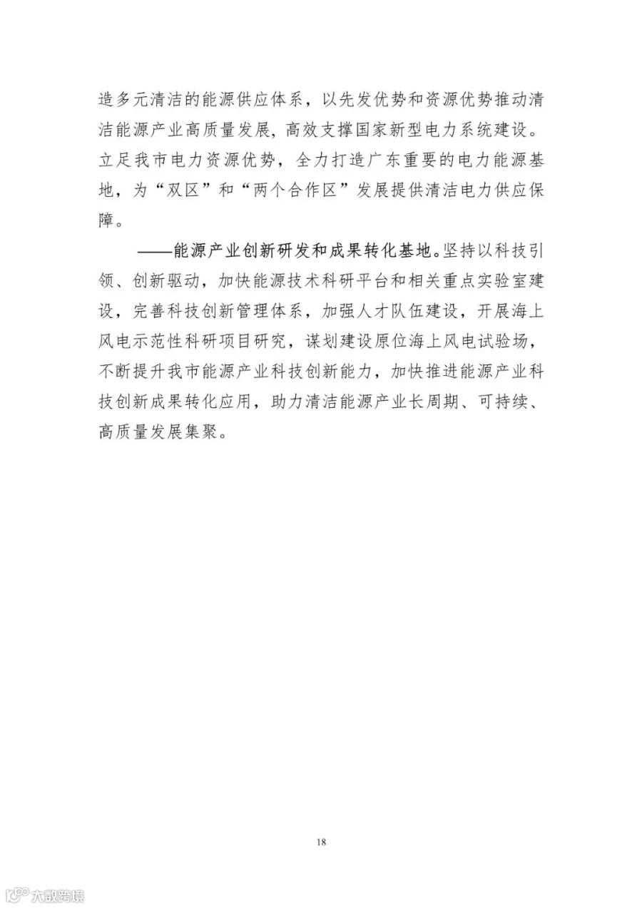 ——国家清洁能源基地。贯彻落实碳达峰、碳中和发展目标,围绕风能、太阳能、水能、核能等清洁能源资源禀赋优势,并建设抽水蓄能、储能等清洁能源配套项目,着力打造多元清洁的能源供应体系,以先发优势和资源优势推动清洁能源产业高质量发展, 高效支撑国家新型电力系统建设。立足阳江市电力资源优势,全力打造广东重要的电力能源基地,为“区”和“两个合作区”发展提供清洁电力供应保障。