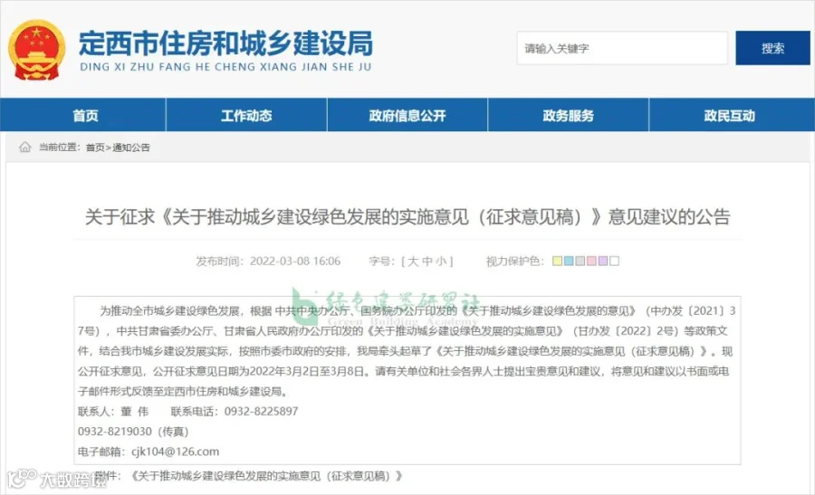 2022年3月2日,甘肃省定西市住房和城乡建设局发布《关于推动城乡建设绿色发展的实施意见(征求意见稿)》。《实施意见》要求:到2025年,城镇民用建筑全面推行超低能耗建筑标准。