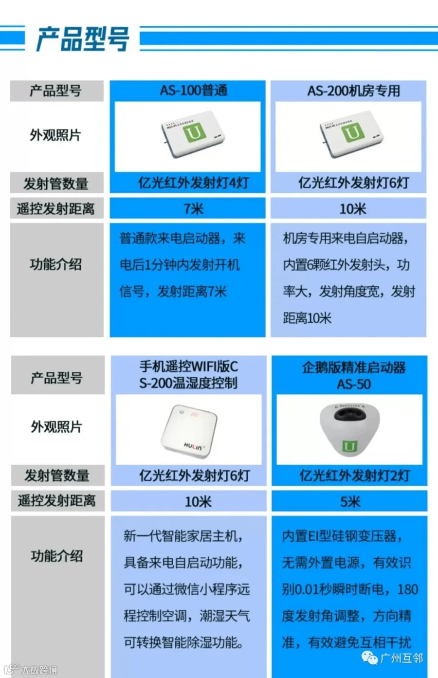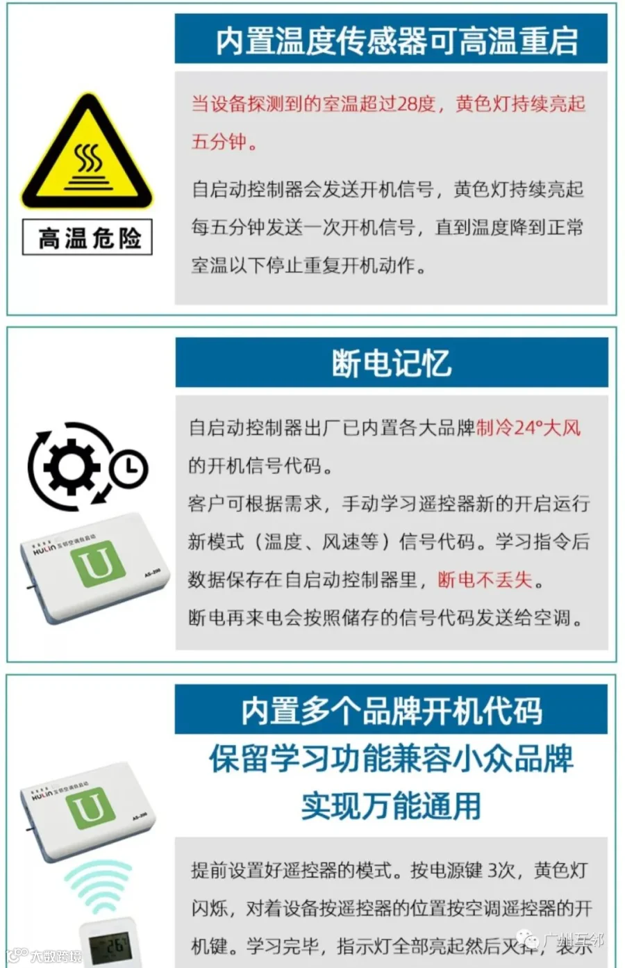 空调自启动系列有AS-50、AS-100、AS-200、小U微型自启动