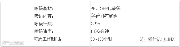 国内某纸尿裤生产企业,在PP、OPP材质的包装袋上喷印日期批号等。因对产品要求提升,喷印的信息中要增加一个防窜码。该企业多次要求增加此应用后未果,加上原先的喷码机保养成本较高,所以寻求替代的设备。