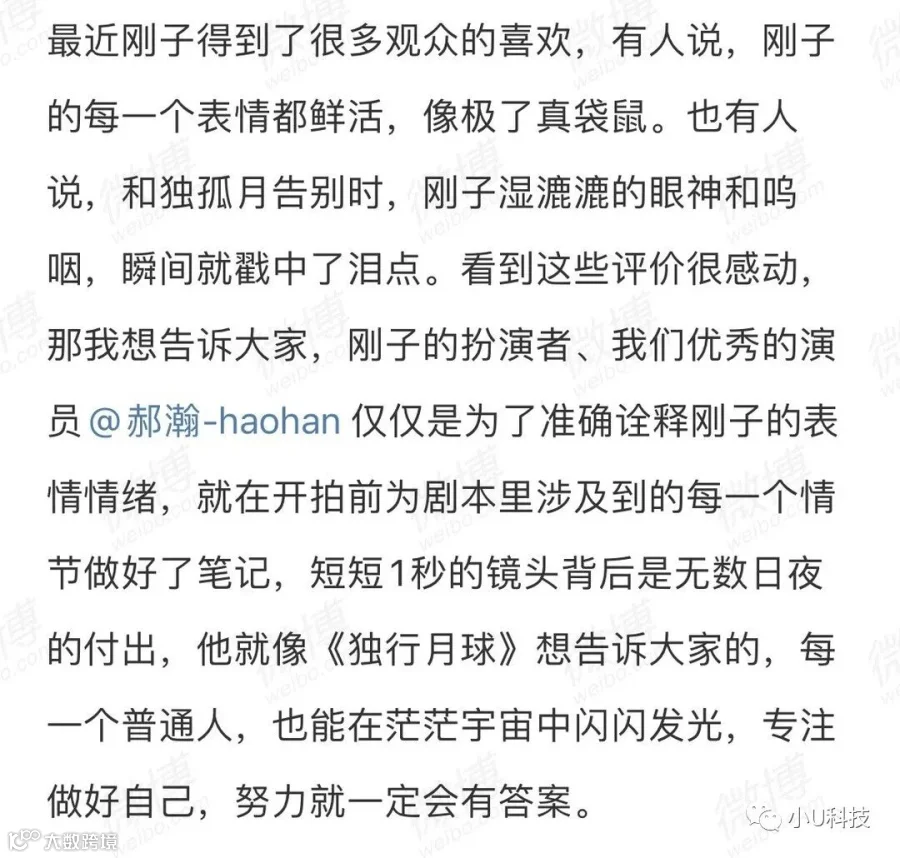 不少观众在看完《独行月球》后,会以为片中的刚子是一只真实的袋鼠,做客CCTV-6电影频道《今日影评》的电影《独行月球》视效总监张帆表示,看到这些影评心里非常开心,但其实背后的工作量是普通观众难以想象的,“我们这个金刚鼠一共是五千多万根毛发,它的一些走向、光泽、软硬度这些都需要去考虑到里边…”