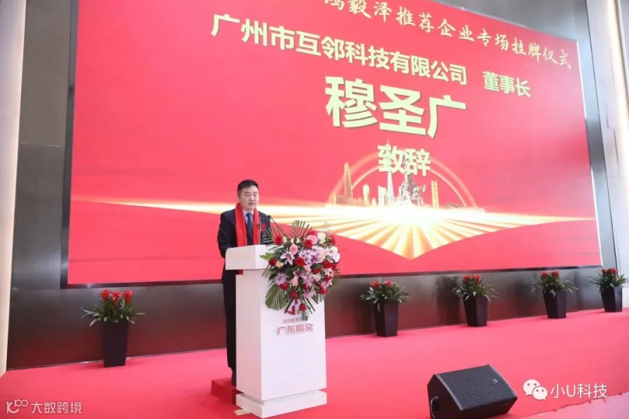 广州市互邻科技有限公司董事长穆圣广代表公司致辞,重点介绍了互邻科技的主营业务、产品特色、公司优势等内容,全方位地展示公司未来发展的战略布局。