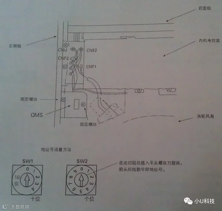 与QMS上的连接器LNK1连接,再将QMS上的连接器LNK2插到内机控制板上
