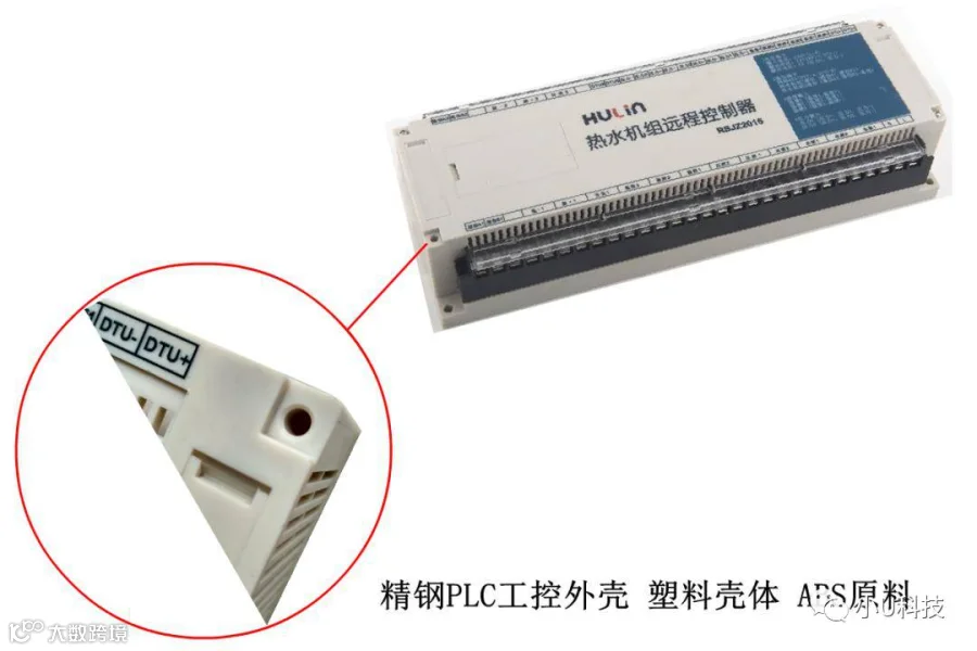 产品上下外壳才有精钢PLC工控外壳塑料壳体ABS原料,卡扣聚甲醛POM,可方便安装在导轨上,4颗安装螺钉,接线端子单边29P。