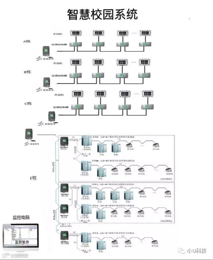 目前本司只负责智慧校园多联机空调集成优化控制系统结构管理这一模块,但智慧校园除了多联机空调集成优化控制系统结构之外,同时还会配有电梯控制管理、水系统控制管理等的各集成优化控制系统,本公司的产品可以与其他系统组合到智慧校园系统。