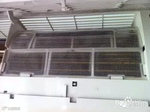 开启空调外盖后,里面往往还会有两个扣,还要轻轻的抠开才能让外盖完全打开。接着就是取过滤网了,过滤网比较容易取,只是由几个卡槽卡住的,先把过滤网往上推一下,下端脱离卡槽后,再轻轻的把过滤网向下拽拿出来。