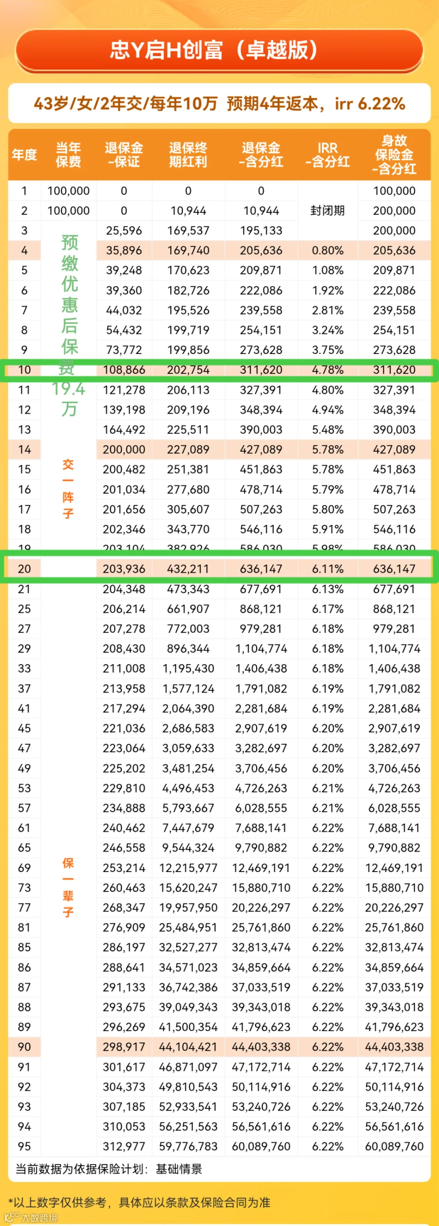 若不提前提取,这份保单就像一份“成长型资产”,持续复利增值。算上保司给的优惠