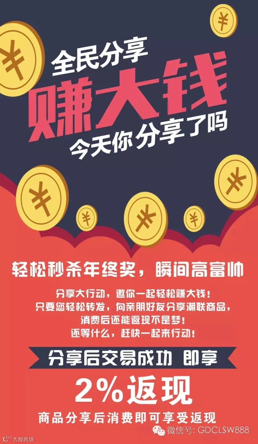 通过微信分享潮联商城商品给好友,在好友消费后即可获得2%的返现奖励💰💰,上不封顶!佣金积满100元才可申请提现!请点击上图查看操作!
