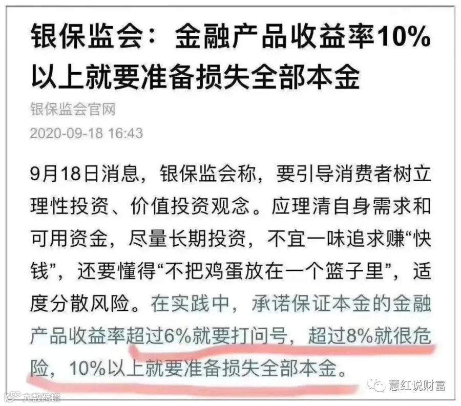 如今高收益、长期限、保本保收益的产品不存在了,还希望买过去那种8%以上保本保收益的产品,那就真是你贪图人家的利息,人家贪图你的本金。