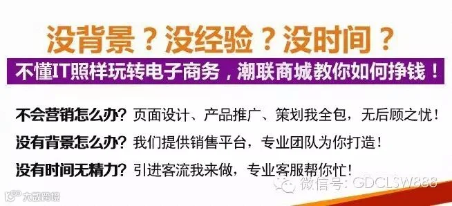 没有技术,没有人才,没有经验,怎么办?潮联商城负责所有的技术、宣传、客流和客服问题。做国内优秀的电子商务平台,共赢网上商城之路,期待您携手同行!