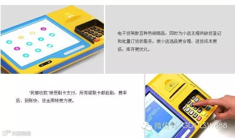 拉卡拉开店宝(生意宝)是集合缴费、 生活、电商、金融多功能于一体的金融及 电子商务服务终端。是拉卡拉的便民支付 平台面向中小商户开发的一款平板智能终 端。
