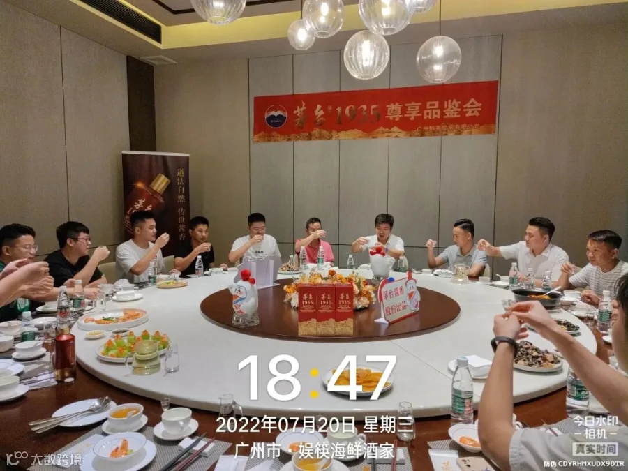 为了提升茅台酱香酒系列酒品牌影响力,加大茅台系列酒在地区消费者心中的地位,推动当地市场产品动销。2022年7月20日广州黔茅贸易有限公司在广州娱筷餐饮酒店开展茅台1935的品鉴活动。