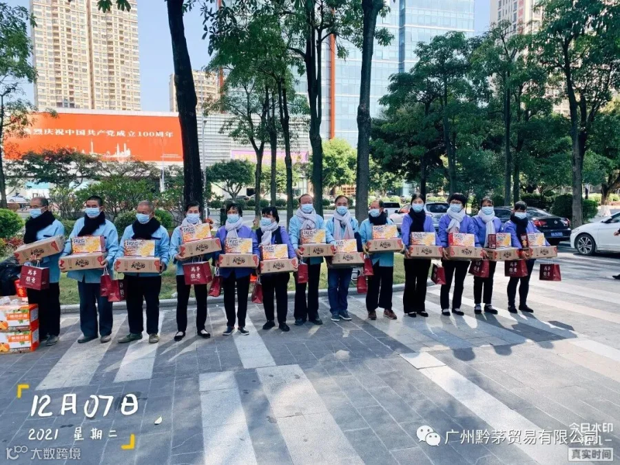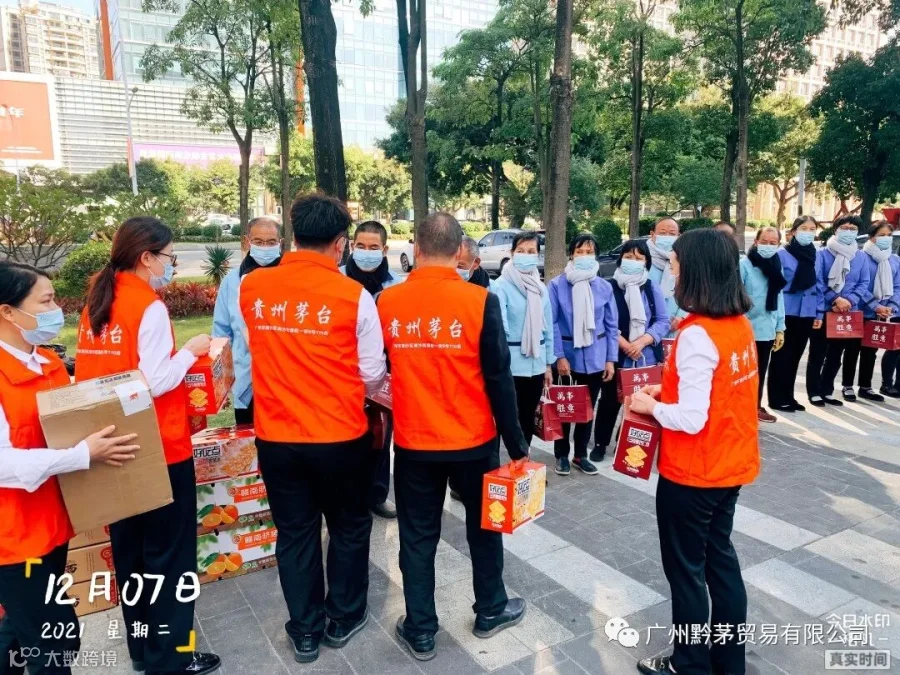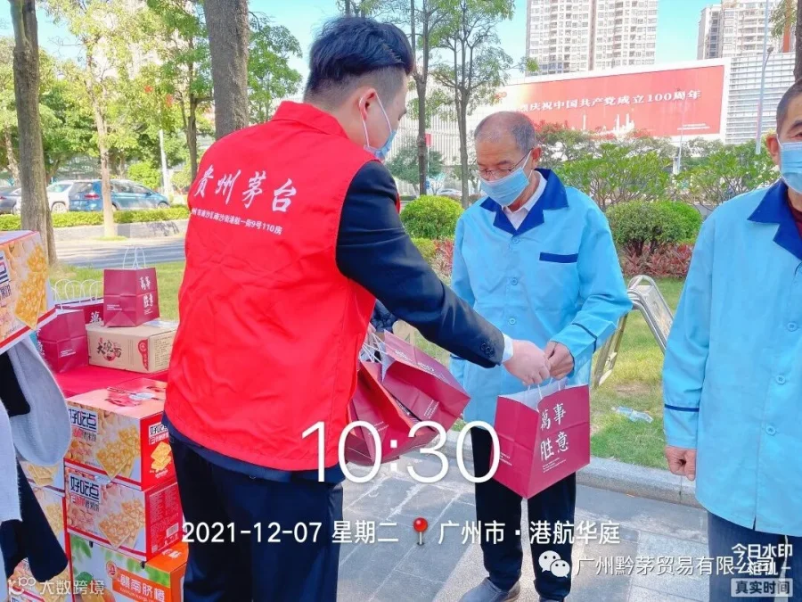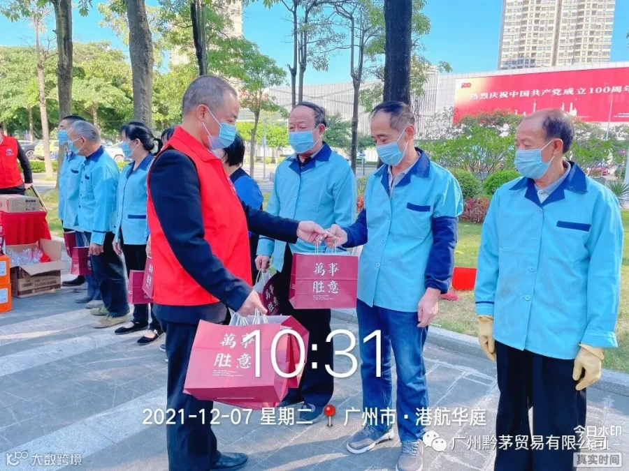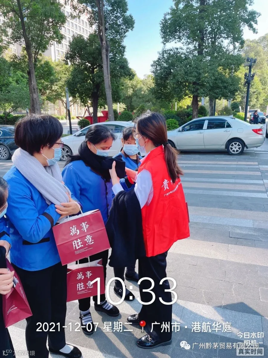随着近期温度的逐渐下降,天气虽在变,但关怀不变。广州黔茅贸易有限公司在2021年12月7日开展”冬日送温暖,行动暖人心“活动,为环卫工人、保洁员送去特别的关注与温暖。此次活动旨在提高公司员工乐于奉献的精神以及自觉服务的意识,发扬中华民族的传统美德,维护好公司及茅台的企业品牌形象。
