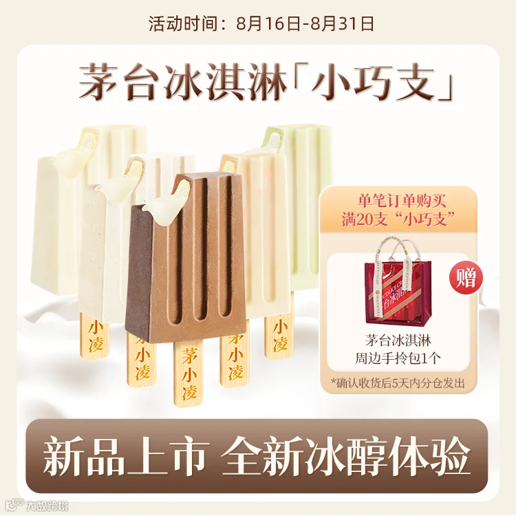 期间,单笔订单买满20支“小巧支”就送茅台冰淇淋周边手拎包,上新