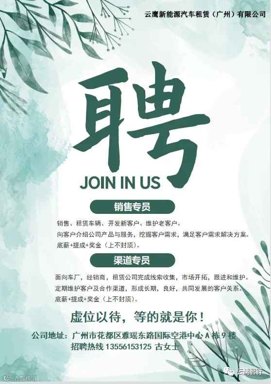欢迎网约车行业、汽车租赁行业精英加入,更多岗位“职”等你来。