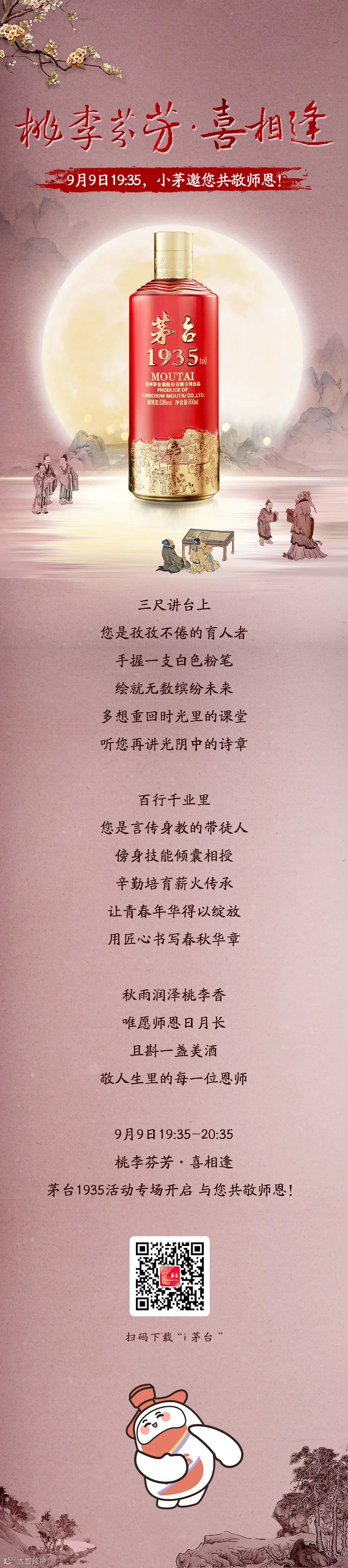 据i茅台官微消息,“桃李芬芳·喜相逢”茅台1935活动专场将在9月9日19:35-20:35开启。
