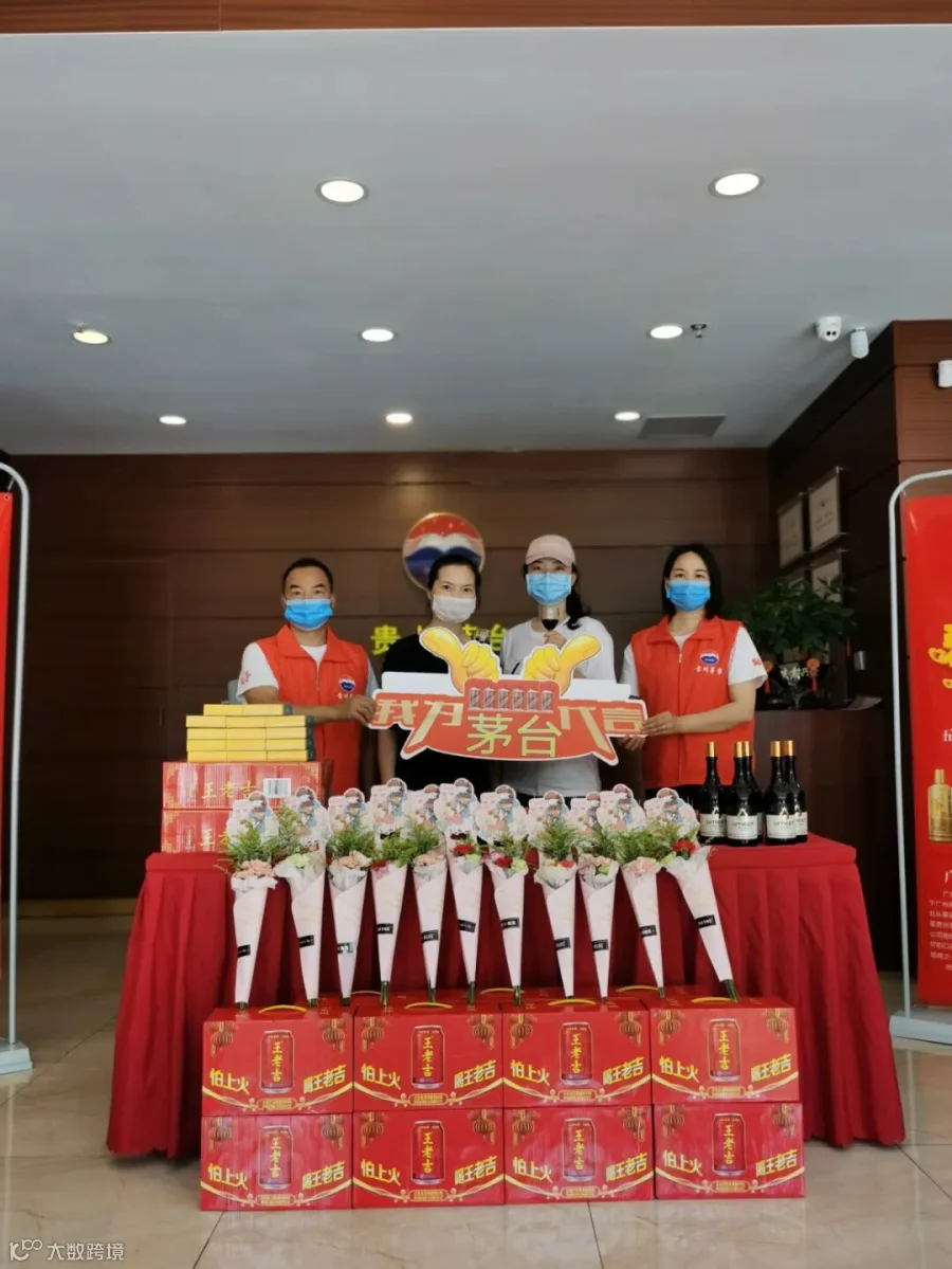 活动过程中,给受邀请的客户派发鲜花礼品。公司员工统一着装,举止端庄。做好活动的同时努力维护好公司及茅台的企业形象。