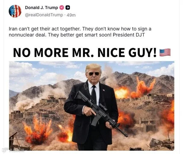 4月29日,特朗普在社交媒体发帖称伊朗“难以达成无核协议”,警告其“必须尽快做出明智决定”,并配发持枪“造型”图片及“不再有好好先生”标语。伊朗高级安全官员同日表示,将对美国“持续海盗行为”采取“前所未有的军事行动”。