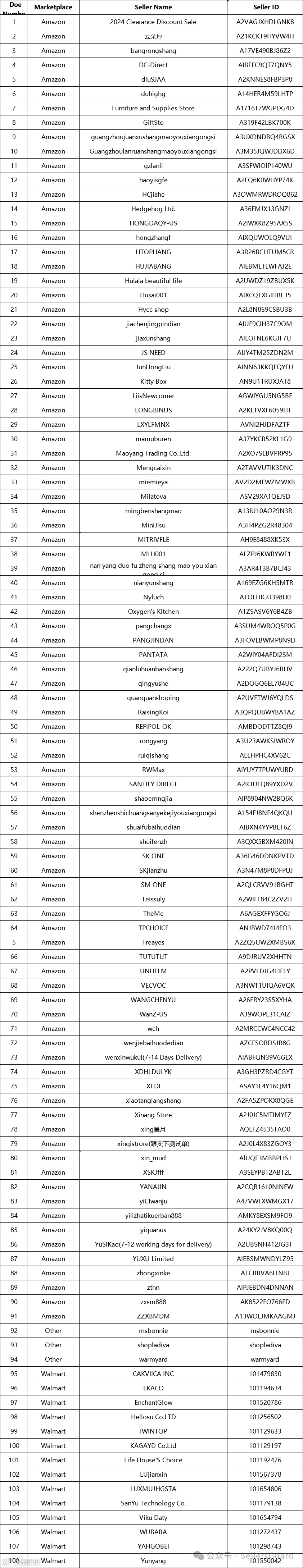 目前该案件的被告名单已公开,主要涉及亚马逊平台和沃尔玛平台的108家店铺。